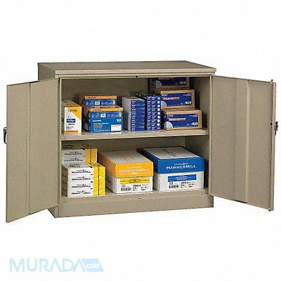 Storage Cabinet Base Type Leveling Body Panel Type Solid Cabinet Color Sand Cabinet Material Steel Cabinet Storage Components Shelves Door Handle Type Swing Door Type Solid Duty Rating Light Duty For Use Indoors/Outdoors No Frame Assembled Unassembled Load Capacity per Shelf 200 lb Lock Type Keyed Mobility Stationary Mounting Location Freestanding Number of Shelves 2 Overall Depth 24 in Overall Height 42 in Overall Width 36 in Audit Trail Storage None