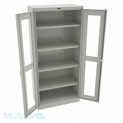 Storage Cabinet Base Type Leveling Body Panel Type Solid Cabinet Color Light Gray Cabinet Material Steel Cabinet Storage Components Shelves Door Handle Type Swing Door Type Clearview Duty Rating Light Duty For Use Indoors/Outdoors No Frame Assembled Unassembled Load Capacity per Shelf 200 lb Lock Type Keyed Mobility Stationary Mounting Location Freestanding Number of Shelves 4 Overall Depth 18 in Overall Height 78 in Overall Width 36 in Audit Trail Storage None