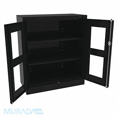 Storage Cabinet Base Type Frame Body Panel Type Solid Cabinet Color Black Cabinet Material Steel Cabinet Storage Components Shelves Door Handle Type Swing Door Type Clearview Duty Rating Light Duty For Use Indoors/Outdoors No Frame Assembled Assembled Load Capacity per Shelf 200 lb Lock Type Keyed Mobility Stationary Mounting Location Freestanding Number of Shelves 2 Overall Depth 18 in Overall Height 42 in Overall Width 36 in Audit Trail Storage None