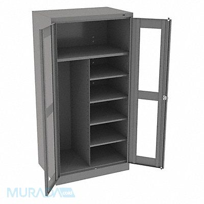 Storage Cabinet Base Type Frame Body Panel Type Solid Cabinet Color Medium Gray Cabinet Material Steel Cabinet Storage Components Hanging Rods Shelves Door Handle Type Swing Door Type Clearview Duty Rating Light Duty For Use Indoors/Outdoors No Frame Assembled Assembled Load Capacity per Shelf 200 lb Lock Type Keyed Mobility Stationary Mounting Location Freestanding Number of Shelves 5 Overall Depth 24 in Overall Height 72 in Overall Width 36 in Audit Trail Storage None