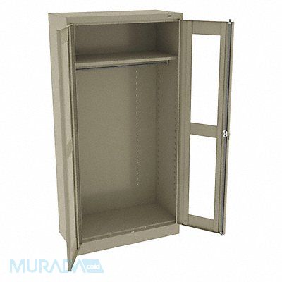 Storage Cabinet Base Type Frame Body Panel Type Solid Cabinet Color Sand Cabinet Material Steel Cabinet Storage Components Hanging Rods Shelves Door Handle Type Swing Door Type Clearview Duty Rating Light Duty For Use Indoors/Outdoors No Frame Assembled Assembled Load Capacity per Shelf 200 lb Lock Type Keyed Mobility Stationary Mounting Location Freestanding Number of Shelves 1 Overall Depth 18 in Overall Height 72 in Overall Width 36 in Audit Trail Storage None