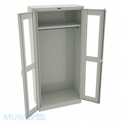 Storage Cabinet Base Type Leveling Body Panel Type Solid Cabinet Color Light Gray Cabinet Material Steel Cabinet Storage Components Hanging Rods Shelves Door Handle Type Swing Door Type Clearview Duty Rating Medium Duty For Use Indoors/Outdoors No Frame Assembled Unassembled Load Capacity per Shelf 150 lb Lock Type Keyed Mobility Stationary Mounting Location Freestanding Number of Shelves 1 Overall Depth 18 in Overall Height 78 in Overall Width 36 in Audit Trail Storage None