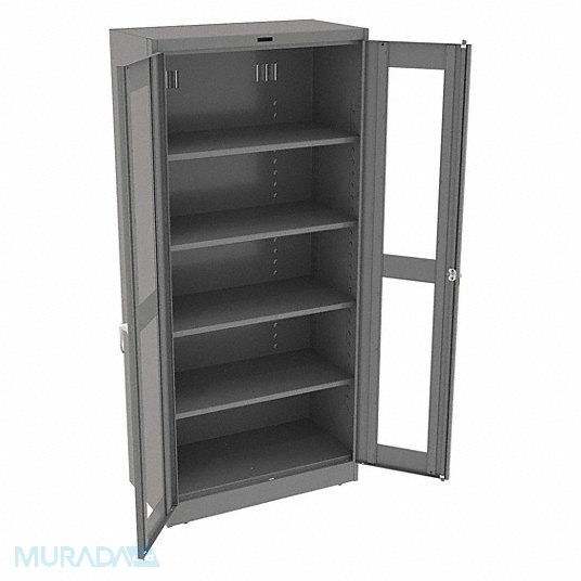 Storage Cabinet Base Type Leveling Body Panel Type Solid Cabinet Color Medium Gray Cabinet Material Steel Cabinet Storage Components Shelves Door Handle Type Swing Door Type Clearview Duty Rating Medium Duty For Use Indoors/Outdoors No Frame Assembled Assembled Load Capacity per Shelf 200 lb Lock Type Keyed Mobility Stationary Mounting Location Freestanding Number of Shelves 4 Overall Depth 24 in Overall Height 78 in Overall Width 36 in Audit Trail Storage None