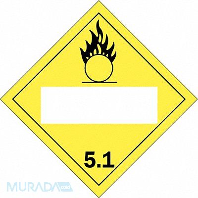 DOT Container Placard Language English Container Label/Placard Type Hazardous Class Hazard Class Class 5 (Oxidizing Agents Organic Peroxides) DOT/UN Product Form Placard Label Width 10 3/4 in Label Height 10 3/4 in Material B-946 Pressure Sensitive Vinyl