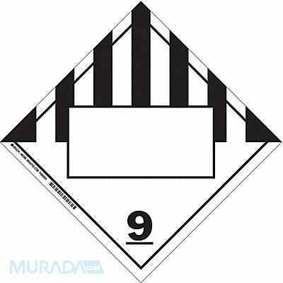 DOT Container Placard Language English Container Label/Placard Type Hazardous Class Hazard Class Class 9 (Miscellaneous Hazardous Material) DOT/UN Product Form Placard Label Width 10 3/4 in Label Height 10 3/4 in Material B-101 Polycoated Tagstock