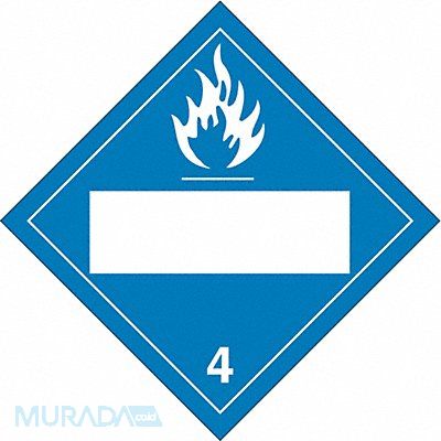 DOT Container Placard Language English Container Label/Placard Type Hazardous Class Hazard Class Class 4 (Flammable Solids) DOT/UN Product Form Placard Label Width 10 3/4 in Label Height 10 3/4 in Material B-120 Premium Fiberglass