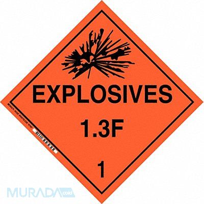 DOT Container Placard Language English Container Label/Placard Type Hazardous Class Hazard Class Class 1 (Explosives) DOT/UN Product Form Placard Message Explosives 1.3F 1 Label Width 10 3/4 in Label Height 10 3/4 in Material B-946 Pressure Sensitive Vinyl