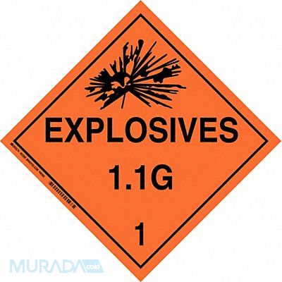 DOT Container Placard Language English Container Label/Placard Type Hazardous Class Hazard Class Class 1 (Explosives) DOT/UN Product Form Placard Message Explosives 1.1G 1 Label Width 10 3/4 in Label Height 10 3/4 in Material B-101 Polycoated Tagstock