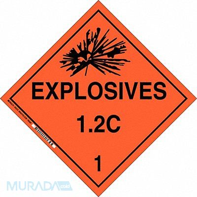 DOT Container Placard Language English Container Label/Placard Type Hazardous Class Hazard Class Class 1 (Explosives) DOT/UN Product Form Placard Message Explosives 1.2C 1 Label Width 10 3/4 in Label Height 10 3/4 in Material B-101 Polycoated Tagstock