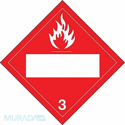 DOT Container Placard Language English Container Label/Placard Type Hazardous Class Hazard Class Class 3 (Flammable Liquids) DOT/UN Product Form Placard Label Width 10 3/4 in Label Height 10 3/4 in Material Polycoated Tagstock
