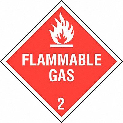 DOT Container Placard Language English Container Label/Placard Type Hazardous Class Hazard Class Class 2 (Gases) DOT/UN Product Form Placard Message Flammable Gas Label Width 10 3/4 in Label Height 10 3/4 in Material Rigid Styrene