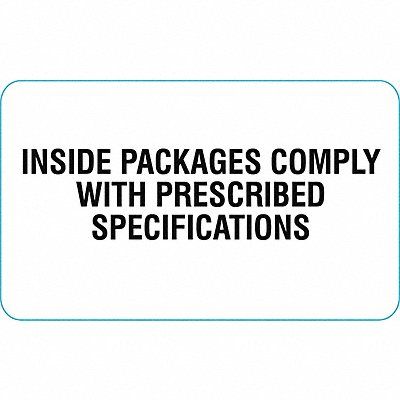 DOT Handling Label Language English Handling Label/Placard Type Hazardous Class DOT/UN Product Form Label Message Inside Packages Comply with Prescribed Specifications Label Width 3 in Label Height 5 in Material Paper Self-Sticking Labels per Roll 100 Package Quantity 100