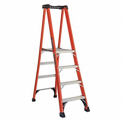 Platform Stepladder Ladder Height 6 ft 8 in Platform Width 14 3/4 in Platform Depth 24 1/4 in Platform Height 3 ft 10 in Load Capacity 375 lb Bottom Width 24 13/16 in Base Spread 50 in Material Fiberglass Series FXP1800 Number of Steps 4 Step Depth 3 in Step Tread Ribbed Rung/Step Spacing 12 in ANSI Type IAA Includes ProTop with Tool Slots and Built-In Magnet SHOX Impact System DaBoot Standards ANSI CSA OSHA Net Weight 27 lb