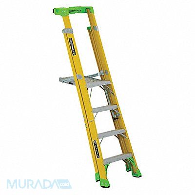Platform Stepladder Ladder Height 7 ft 3 in Platform Width 14 1/4 in Platform Depth 19 in Platform Height 3 ft 10 in Load Capacity 375 lb Bottom Width 25-7/16 in Base Spread 41-1/4 in Material Fiberglass Series FCP1400HD Number of Steps 4 Step Depth 3 in Step Tread Ribbed Rung/Step Spacing 12 in ANSI Type IAA Standards ANSI OSHA CSA Net Weight 34 lb