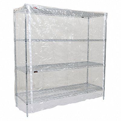 Zipper Transparent Vinyl Cover for Wire Shelf Utility Carts Overall Length 60 in Overall Width 21 in Overall Height 74 in Zipper Closure Material Vinyl Color Clear Features Reinforced Top Corners