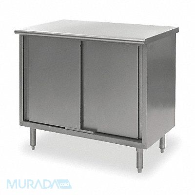 Cabinet Workbench Top Material Stainless Steel Color Silver Non-Metal Top Thickness Not Applicable Number of Doors 2 Number of Drawers 0 Number of Shelves 1 Overall Depth 30 in Overall Height 34 1/2 in Overall Load Capacity 600 lb Overall Width 60 in Top Metal Material Gauge 14 ga Included Components Backsplash Assembly Fully Assembled Brake Type None Cabinet Interior Depth 30 in Caster Mount Type Not Applicable Caster Type Not Applicable Door Type Sliding Edge Shape Square