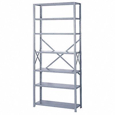 Metal Shelving Dove Gray Powder Coated Frame Material Steel Load Capacity per Shelf 1 150 lb Whole Unit Load Capacity 8 050 lb Number of Shelves 7 Overall Depth 12 in Overall Height 84 in Overall Width 36 in Shelf Configuration Starter Shelf Style Solid Shelving Material Steel Assembled Unassembled Shelving Gauge 18 ga Post Gauge 16 ga Shelf Adjustment Increments 1 1/2 in Number of Drawers 0 Duty Rating Heavy-Duty Includes (2) Upright Assemblies Back Brace