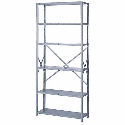 Metal Shelving Dove Gray Powder Coated Frame Material Steel Load Capacity per Shelf 1 300 lb Whole Unit Load Capacity 7 800 lb Number of Shelves 6 Overall Depth 18 in Overall Height 84 in Overall Width 36 in Shelf Configuration Starter Shelf Style Solid Shelving Material Steel Assembled Unassembled Shelving Gauge 18 ga Post Gauge 16 ga Shelf Adjustment Increments 1 1/2 in Number of Drawers 0 Duty Rating Heavy-Duty Includes (2) Upright Assemblies Back Brace