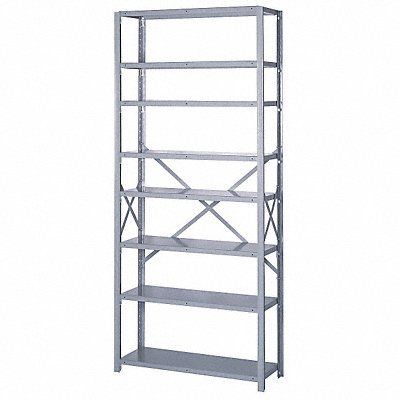 Metal Shelving Dove Gray Powder Coated Frame Material Steel Load Capacity per Shelf 1 300 lb Whole Unit Load Capacity 10 400 lb Number of Shelves 8 Overall Depth 24 in Overall Height 84 in Overall Width 36 in Shelf Configuration Starter Shelf Style Solid Shelving Material Steel Assembled Unassembled Shelving Gauge 18 ga Post Gauge 16 ga Shelf Adjustment Increments 1 1/2 in Number of Drawers 0 Duty Rating Heavy-Duty Includes (2) Upright Assemblies Back Brace