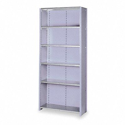 Metal Shelving Dove Gray Powder Coated Frame Material Steel Load Capacity per Shelf 1 150 lb Whole Unit Load Capacity 6 900 lb Number of Shelves 6 Overall Depth 18 in Overall Height 84 in Overall Width 36 in Shelf Configuration Starter Shelf Style Solid Shelving Material Steel Assembled Unassembled Shelving Gauge 18 ga Post Gauge 16 ga Shelf Adjustment Increments 1 1/2 in Number of Drawers 0 Duty Rating Heavy-Duty Includes (2) Closed Upright Assemblies Closed Shelving Back