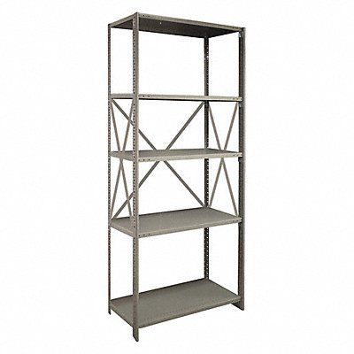 Metal Shelving Dove Gray Powder Coated Frame Material Steel Load Capacity per Shelf 800 lb Number of Shelves 5 Overall Depth 12 in Overall Height 85 in Overall Width 36 in Shelf Style Solid Shelving Material Steel Shelving Gauge 20 ga Includes (2) Upright Assemblies (5) Shelves Back and Side Braces Shelf Clips
