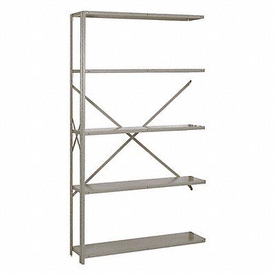 Steel Clip Adjustable Shelving Dove Gray Powder Coated Frame Material Steel Load Capacity per Shelf 750 lb Whole Unit Load Capacity 3 750 lb Number of Shelves 5 Overall Depth 12 in Overall Height 84 in Overall Width 48 in Post Construction Angle Shelf Configuration Add-On Shelf Style Solid Shelving Material Steel Assembled Partially Assembled Shelving Gauge 18 ga Post Gauge 16 ga Shelf Adjustment Increments 1 1/2 in Mounting Type Bolts Mounting Hardware Required Yes