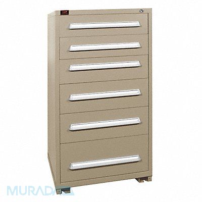 Modular Drawer Cabinet Base Type Fork Pockets Adjustable Dividers Yes Cabinet Color Putty Cabinet Storage Components Drawers Drawer Height 6 1/4 in 7 in 9 1/2 in 11 3/4 in Includes Dividers Yes Number of Compartments per Drawer (1) 16 (2) 12 (3) 8 Number of Drawers 6 Overall Depth 28 1/4 in Overall Height 59 1/4 in Overall Width 30 in Leg Height 2 1/8 in Mobility Stationary Number of Compartments 64 Cabinet Finish Powder Coated Cabinet Material Steel Drawer Access Multiple