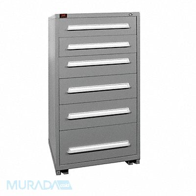 Modular Drawer Cabinet Base Type Fork Pockets Adjustable Dividers Yes Cabinet Color Gray Cabinet Storage Components Drawers Drawer Height 6 1/4 in 7 in 9 1/2 in 11 3/4 in Includes Dividers Yes Number of Compartments per Drawer (1) 16 (2) 12 (3) 8 Number of Drawers 6 Overall Depth 28 1/4 in Overall Height 59 1/4 in Overall Width 30 in Leg Height 2 1/8 in Mobility Stationary Number of Compartments 64 Cabinet Finish Powder Coated Cabinet Material Steel Drawer Access Multiple