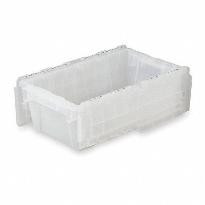 Attached Lid Container Container Wall Type Solid Includes Lid Yes Material Plastic Maximum Operating Temperature 120 Degrees F Minimum Operating Temperature 0 Degrees F Body Color Clear Lid Color Clear Nestable Yes Overall Height 7 1/4 in Overall Length 19 3/4 in Overall Width 11 3/4 in Stackable Yes Stacking Capacity 300 lb Volume Capacity 5.2 gal Weight Capacity 70 lb Bottom Inside Length 16 1/4 in Bottom Inside Width 8 5/8 in Bottom Outside Length 16 7/8 in