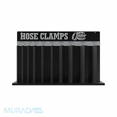 Hose Clamp Rack 10 loop Black Powder Coated Steel Number of Spindles 10 Overall Depth 42 11/16 in Overall Height 35 1/2 in Overall Width 25 1/8 in For Maximum Spool Diameter 2 1/4 in Mounting Hardware Required No Includes Mounting Hardware No Rack Type Standalone
