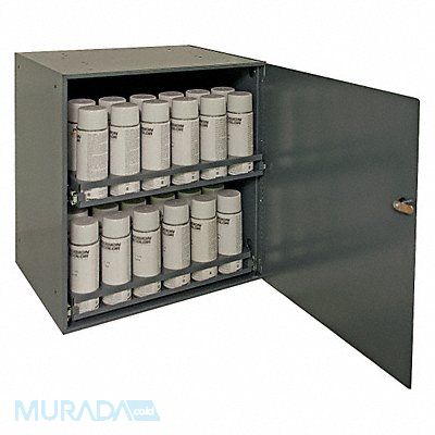 Aerosol Cabinet Overall Depth 15 3/4 in Overall Height 21 3/4 in Overall Width 20 1/4 in Cabinet Color Gray Cabinet Finish Powder Coated Cabinet Material Steel Frame Assembled Assembled Includes Locking Door Lock Type Keyed Method of Construction Welded Mobility Stationary Number of Drawers 2 Door Locking Points 1 Includes Mounting Hardware No Mounting Location Wall Number of Compartments 48 Number of Compartments per Drawer 24 Number of Keys 2