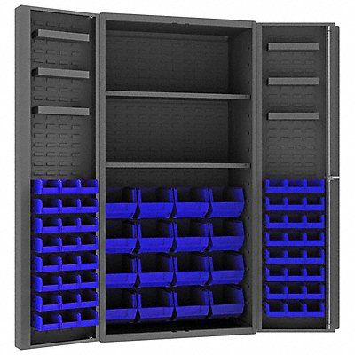 K4909 Bin Cabinet Base Type Frame Bin Color Blue Bin HxWxD (16) 8 in x 15 in x 7 in (48) 4 in x 7 in x 3 in Cabinet Color Gray Cabinet Storage Components Bins Shelves Door Type Deep Box Frame Assembled Assembled Mobility Stationary Number of Bins 64 Number of Cabinet Bins 16 Number of Door Bins 48 Number of Shelves 8 Overall Depth 24 in Overall Height 72 in Overall Width 36 in Bin Depth 7 in 15 in Bin Height 3 in 7 in Bin Louvered Panel Location Door Bin Material Polypropylene