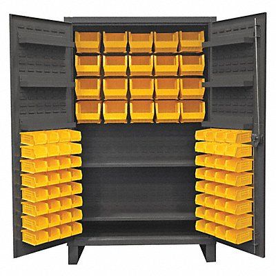 K4927 Bin Cabinet Base Type Legs Bin Color Yellow Bin HxWxD (24) 8 in x 15 in x 7 in (60) 4 in x 7 in x 3 in Cabinet Color Gray Cabinet Storage Components Bins Shelves Door Type Flush Frame Assembled Assembled Mobility Stationary Number of Bins 84 Number of Cabinet Bins 24 Number of Door Bins 60 Number of Shelves 8 Overall Depth 24 in Overall Height 78 in Overall Width 48 in Bin Depth 7 in 15 in Bin Height 3 in 7 in Bin Material Polypropylene Bin Width 4 in 8 in