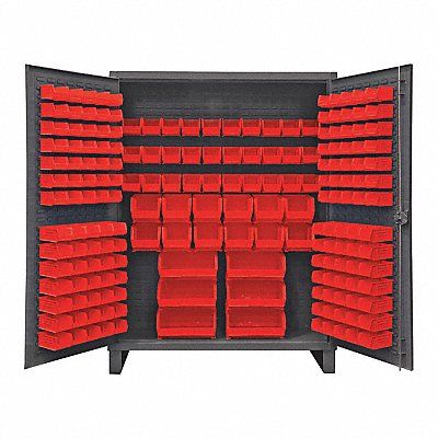 K4905 Bin Cabinet Base Type Legs Bin Color Red Bin HxWxD (12) 8 in x 15 in x 7 in (36) 6 in x 11 in x 5 in (6) 16 in x 15 in x 7 in (72) 4 in x 5 in x 3 in (72) 4 in x 7 in x 3 in Cabinet Color Gray Cabinet Storage Components Bins Door Type Flush Frame Assembled Assembled Mobility Stationary Number of Bins 198 Number of Cabinet Bins 54 Number of Door Bins 144 Number of Shelves 0 Overall Depth 24 in Overall Height 78 in Overall Width 60 in Bin Depth 5 in 7 in 11 in 15 in