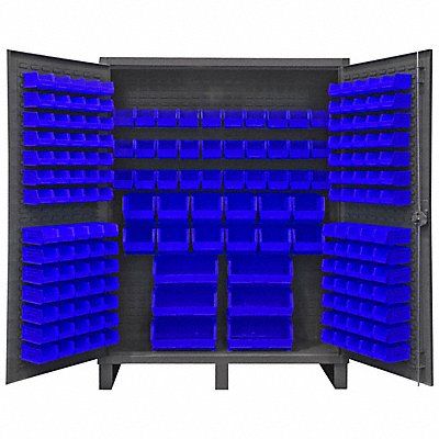 K4905 Bin Cabinet Base Type Legs Bin Color Blue Bin HxWxD (12) 8 in x 15 in x 7 in (36) 6 in x 11 in x 5 in (6) 16 in x 15 in x 7 in (72) 4 in x 5 in x 3 in (72) 4 in x 7 in x 3 in Cabinet Color Gray Cabinet Storage Components Bins Door Type Flush Frame Assembled Assembled Mobility Stationary Number of Bins 198 Number of Cabinet Bins 54 Number of Door Bins 144 Number of Shelves 0 Overall Depth 24 in Overall Height 78 in Overall Width 60 in Bin Depth 5 in 7 in 11 in 15 in