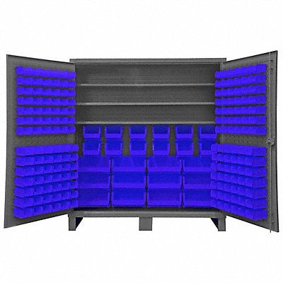 K4931 Bin Cabinet Base Type Legs Bin Color Blue Bin HxWxD (12) 16 in x 15 in x 7 in (12) 8 in x 15 in x 7 in (84) 4 in x 5 in x 3 in (84) 4 in x 7 in x 3 in Cabinet Color Gray Cabinet Storage Components Bins Shelves Door Type Flush Frame Assembled Assembled Mobility Stationary Number of Bins 192 Number of Cabinet Bins 24 Number of Door Bins 168 Number of Shelves 3 Overall Depth 24 in Overall Height 78 in Overall Width 72 in Bin Depth 5 in 7 in 15 in Bin Height 3 in 7 in