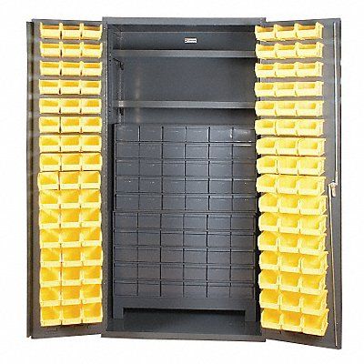 K4938 Bin Cabinet Base Type Frame Bin Color Yellow Bin HxWxD (96) 4 in x 5 in x 3 in Cabinet Color Gray Cabinet Storage Components Bins Drawers Shelves Door Type Flush Drawer Height 2 in 4 in 5 in Drawer Width 28 7/8 in Frame Assembled Assembled Mobility Stationary Number of Bins 156 Number of Cabinet Bins 60 Number of Door Bins 96 Number of Shelves 2 Overall Depth 24 in Overall Height 72 in Overall Width 36 in Vertical Shelf Clearance Not Applicable Bin Depth 5 in