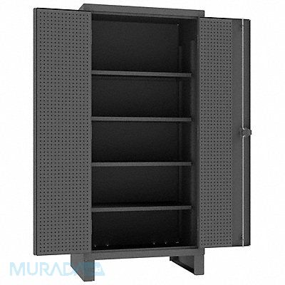 Pegboard Cabinet Base Type Legs Body Panel Type Solid Cabinet Material Steel Cabinet Storage Components Pegboard Shelves Door Handle Type Swing Door Type Solid Duty Rating Super Duty Frame Assembled Assembled Load Capacity per Shelf 1 750 lb Lock Type Padlock Hasp Mobility Stationary Mounting Location Freestanding Number of Shelves 4 Overall Depth 24 in Overall Height 78 in Overall Width 36 in Cabinet Color Gray Cabinet Finish Powder Coated Door Opening 180 Degrees