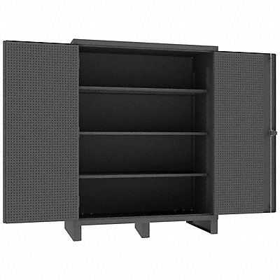 Pegboard Cabinet Base Type Legs Body Panel Type Solid Cabinet Material Steel Cabinet Storage Components Pegboard Shelves Door Handle Type Swing Duty Rating Super Duty Frame Assembled Assembled Load Capacity per Shelf 1 650 lb Lock Type Padlock Hasp Mobility Stationary Mounting Location Freestanding Number of Shelves 3 Overall Depth 30 in Overall Height 78 in Overall Width 60 in Cabinet Color Gray Cabinet Finish Powder Coated Number of Doors 2 Panel Material Thickness 12 ga