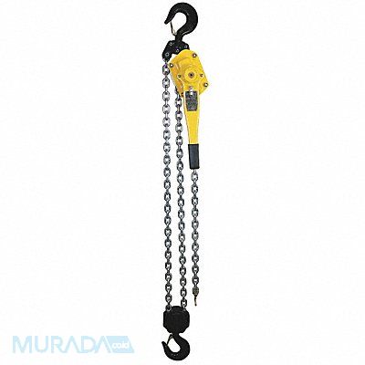 Lever Chain Hoist Load Capacity 12 000 lb Hoist Lift 5 ft Hook Opening 1 15/16 in Min Between Hooks 24 3/8 in Pull to Lift Rated Load 75 lb Lever Length 16 1/8 in Brake Twin Pawl Weston Style Load Brake Reeving 2 Chain Zinc Plated Chain Length 11 ft Finish Powder Coated Standards CE AS 1418.2 ANSI B30.21 ANSI B30.16 Includes Safety Latch Hooks Hoist Overload Protection Yes Hoist Mount Hook Mounted - No Trolley