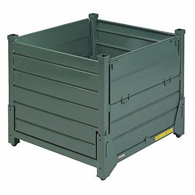 Collapsible Bulk Container Color Green Container Wall Type Vented Folded Depth 48 in Folded Height 14 1/2 in Folded Width 45 in Fork Entry 4-Way Entry Fork Pockets Yes Maximum Operating Temperature 600 Degrees F Minimum Operating Temperature -20 Degrees F Mobility Stationary Number of Drop Doors 1 Overall Height 42 in Overall Length 45 in Overall Width 48 in Stackable Yes Stacking Capacity 4 000 lb Volume Capacity 28.3 cu ft Weight Capacity 4 000 lb Collapsible Yes