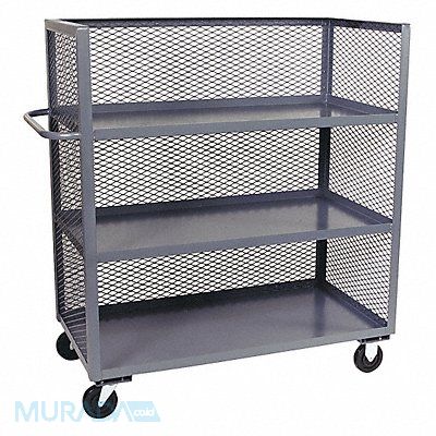 Single-Side-Access Mesh-Wall Metal Stock Truck Load Capacity 3 000 lb Number of Shelves 3 Shelf Length 60 in Shelf Width 24 in Caster Wheel Dia 6 in Caster Wheel/Tread Material Phenolic Caster/Wheel Configuration (2) Rigid (2) Swivel Caster/Wheel Mounting Location Standard Distance Between Shelves 15 in Finish Powder Coated Handle Type Flat Material Steel Overall Length 24 in Overall Width 60 in Overall Height 57 in