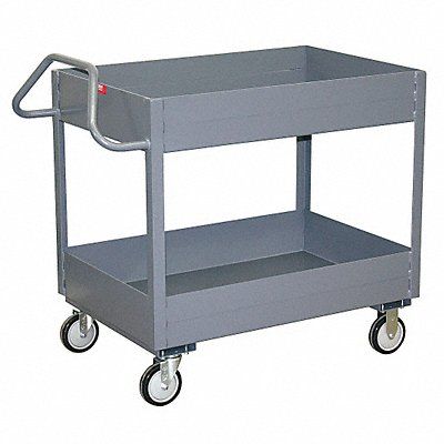 Utility Cart with Deep Lipped Metal Shelves Load Capacity 1 200 lb Steel Material 12 ga Gauge Powder Coated Finish Gray Color Overall Length 54 in Overall Width 25 in Number of Shelves 2 Capacity per Shelf 600 lb Distance Between Shelves 16 in Shelf Length 48 in Shelf Width 24 in Top Shelf Height 35 in Assembled/Unassembled Assembled