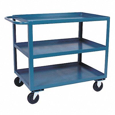 Utility Cart with Lipped Metal Shelves Load Capacity 1 200 lb Steel Material 12 ga Gauge Powder Coated Finish Gray Color Overall Length 66 in Overall Width 31 in Number of Shelves 3 Capacity per Shelf 466 lb Distance Between Shelves 12 in Shelf Length 60 in Shelf Width 30 in Distance Between Middle and Bottom Shelf 12 in Distance Between Top and Middle Shelf 12 in Top Shelf Height 35 in Assembled/Unassembled Assembled