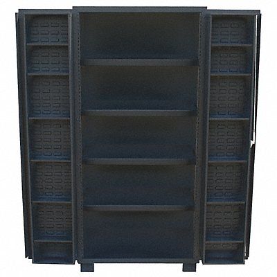 Bin Cabinet Base Type Legs Cabinet Color Black Cabinet Storage Components Shelves Door Type Deep Box Frame Assembled Assembled Mobility Stationary Number of Bins 0 Number of Shelves 16 Overall Depth 24 in Overall Height 78 in Overall Width 36 in Vertical Shelf Clearance (2) 2 1/2 in Bin Louvered Panel Location Door and Cabinet Back Door Handle Type Paddle Lock Type Padlock Hasp Overall Load Capacity 2 000 lb Shelf Adjustability Adjustable Shelf Depth 3 1/2 in
