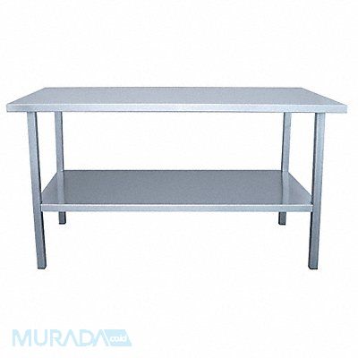 Workbench Height Adjustability Fixed Height Number of Shelves 1 Assembly Fully Assembled Back Stop Height Not Applicable Color Silver Edge Shape Square Features 1 1/2 in Square Tubular Legs Bottom Shelf is Inset 16 gauge Stainless Steel Shelves Stainless Top is Double Formed Around Wood Core Frame Material Stainless Steel Frame Material Finish Polished Height Adjustment Increments Not Applicable Included Components Lower Shelf Includes (2) Shelves