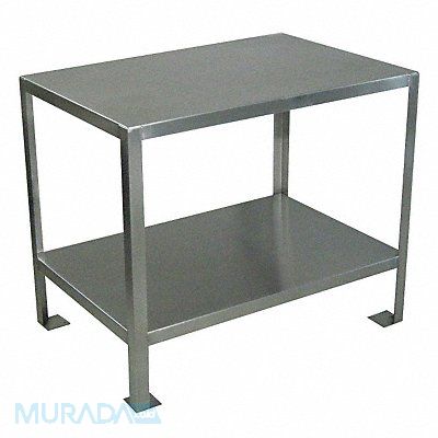 Work Table Height Adjustability Fixed Height Number of Shelves 1 Assembly Fully Assembled Back Stop Height Not Applicable Color Silver Edge Shape Square Features 16 Gauge Corner Angles - 1 1/2 in Clearance Between Shelves is 20 in Flush Shelves Frame Material Stainless Steel Height Adjustment Increments Not Applicable Included Components Lower Shelf Upper Shelf Includes 1 1/2 in Stainless Corner Posts Maximum Adjustable Height Not Applicable