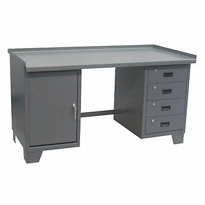 Workbench Height Adjustability Fixed Height Top Material Steel Assembly Fully Assembled Color Gray Frame Material Steel Leg Type Pedestal Cabinet Base Maximum Adjustable Height Not Applicable Minimum Adjustable Height Not Applicable Non-Metal Top Thickness Not Applicable Number of Cabinets 1 Number of Drawers 4 Number of Knockouts 0 Included Components Back Stop Drawers Side Stops Number of Outlets 0 Number of Shelves 0 Overall Depth 30 in Overall Fixed Height 34 in