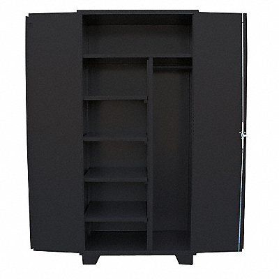 Storage Cabinet Base Type Legs Body Panel Type Solid Cabinet Color Black Cabinet Material Steel Cabinet Storage Components Shelves Door Handle Type Swing Door Type Solid Duty Rating Extra-Heavy Duty For Use Indoors/Outdoors No Frame Assembled Assembled Load Capacity per Shelf 300 lb Lock Type Padlock Hasp Mobility Stationary Mounting Location Freestanding Number of Shelves 5 Overall Depth 24 in Overall Height 78 in Overall Width 36 in Audit Trail Storage None