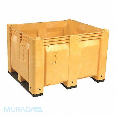 J2329 Bulk Container Color Yellow Container Wall Type Solid Folded Depth 40 in Folded Height 31 in Folded Width 48 in Fork Entry 4-Way Entry Fork Pockets Yes Maximum Operating Temperature 140 Degrees F Minimum Operating Temperature -40 Degrees F Mobility Stationary Overall Height 31 in Overall Length 48 in Overall Width 40 in Stackable Yes Stacking Capacity 14 000 lb Volume Capacity 25.4 cu ft Weight Capacity 1 500 lb Includes Lid No Bottom Inside Length 45 in